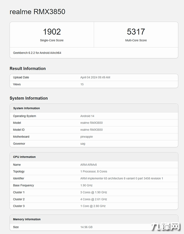 在GeekBench 6.2.2 版本中,這款新機(jī)目前的單核得分最高達(dá)1902分,多核得分最高達(dá)5317分。